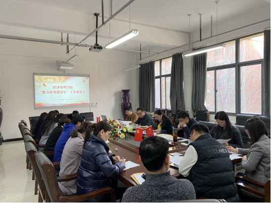 为深入推进“能力作风建设年”活动各项任务落地落实,3月3日,我院召开“能力作风建设年”活动推进会。学院领导班子、各系部主任、科室负责人参加会议。会议由院党委书记孙敬霞主持。