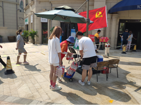 8月15日,郑州市启动第四轮全员核酸检测。我院学生党员会展181班杨宇航、造价182班靳燕鸽积极联系金水区兴达路街道鸿苑社区,为奋战在一线的医护人员、社区工作人员送去了矿泉水等物资。在现场,两位同学又披上红马甲,顶着酷暑当起了志愿者。他们一方面帮助工作人员维持现场秩序,一方面帮助不会扫码登记的群众登记检测信息,帮助社区高质量完成了第四轮核酸检测工作。鸿苑社区党支部书记、物业经理等工作人员对杨宇航、靳燕鸽竖起了大拇指。