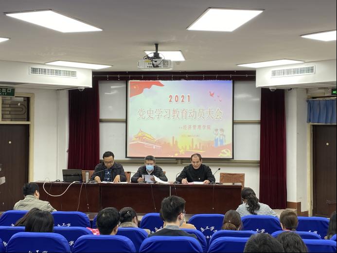 2021年3月29日,我院在4号楼311学术报告厅召开党史学习教育动员会。学院领导班子成员、全体教职工、党员学生代表参加会议,校党史学习教育第五指导组成员、纪委副书记李惠杰莅临指导。会议由学院党委书记张文勇主持。