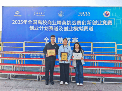 近日,由中国国际贸易促进委员会商业行业委员会、中国国际商会商业行业商会和中国商业经济学会联合主办的2025年全国高校商业精英挑战赛创新创业竞赛全国精英赛在山东师范大学圆满落幕。我校参赛团队发挥出色,再次斩获佳绩。
