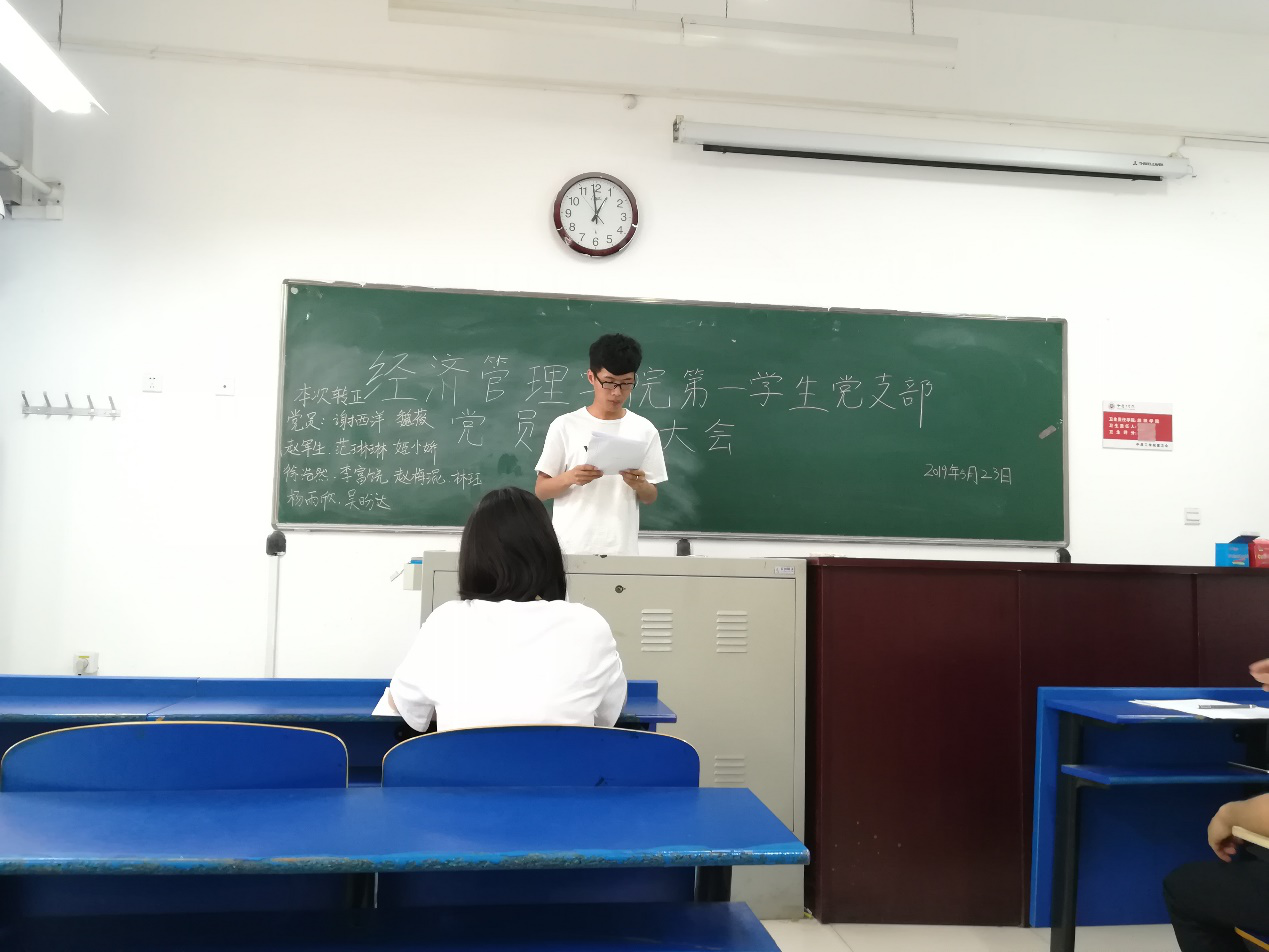2019年5月23日,我院四个学生党支部分别在二号组团楼召开党员转正大会,参加此次会议的有各学生党支部的正式党员、预备党员,学生党支部书记及支委成员。会议由各支部书记主持,对魏薇等46名预备党员发展为中共正式党员进行讨论和表决。