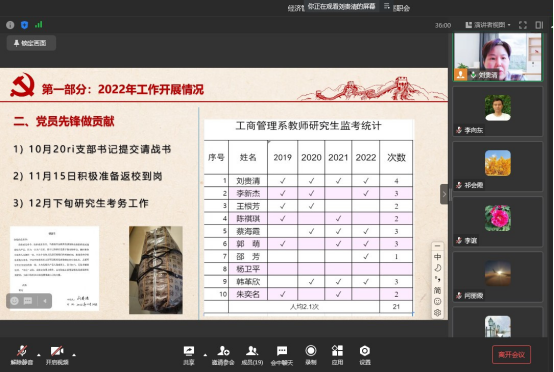 根据学校党建三级量化考核要求,12月27日,tyc7111cc太阳成集团召开2022年度党支部书记线上述职评议会议。学院党委领导班子成员、各党支部书记参加会议,会议由党委书记李向东主持。