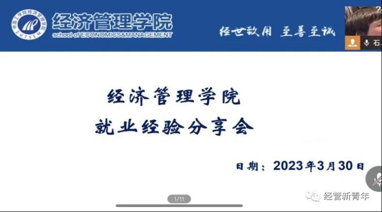 为增强学生的生涯规划与职业发展意识,引导学生树立正确的就业观、择业观,提升学生就业能力,2023年3月30日晚八点,tyc7111cc太阳成集团于线上举行了“2023届毕业生就业经验分享会”。本次活动邀请了2022届优秀毕业生孙佰灵、张双乾、翁梦婷、任子厚以及郑州大学2017届毕业生中科院在读博士黄亚峰,从简历制作、求职途径、就业经验和求职感悟等方面展开分享。毕业生辅导员郭政良老师主持此次会议,一百余名来自不同专业毕业生参与本次活动。