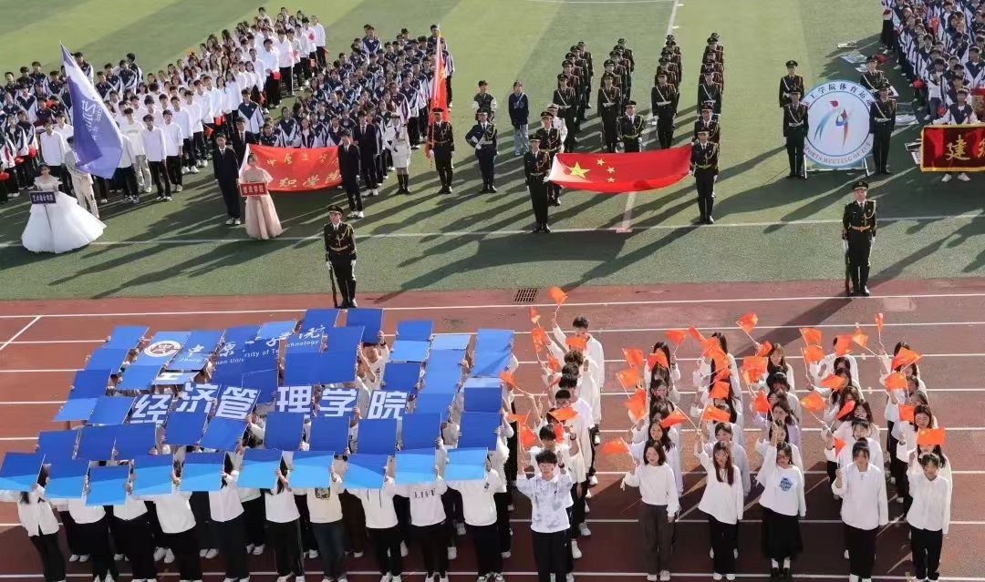 运动会开幕式上,我院代表方队手挥红旗,高举院训牌,迈着整齐的步伐,自信从容地走过主席台,他们精神抖擞,意气风发,完美呈现了经管学子蓬勃向上的精神风貌。