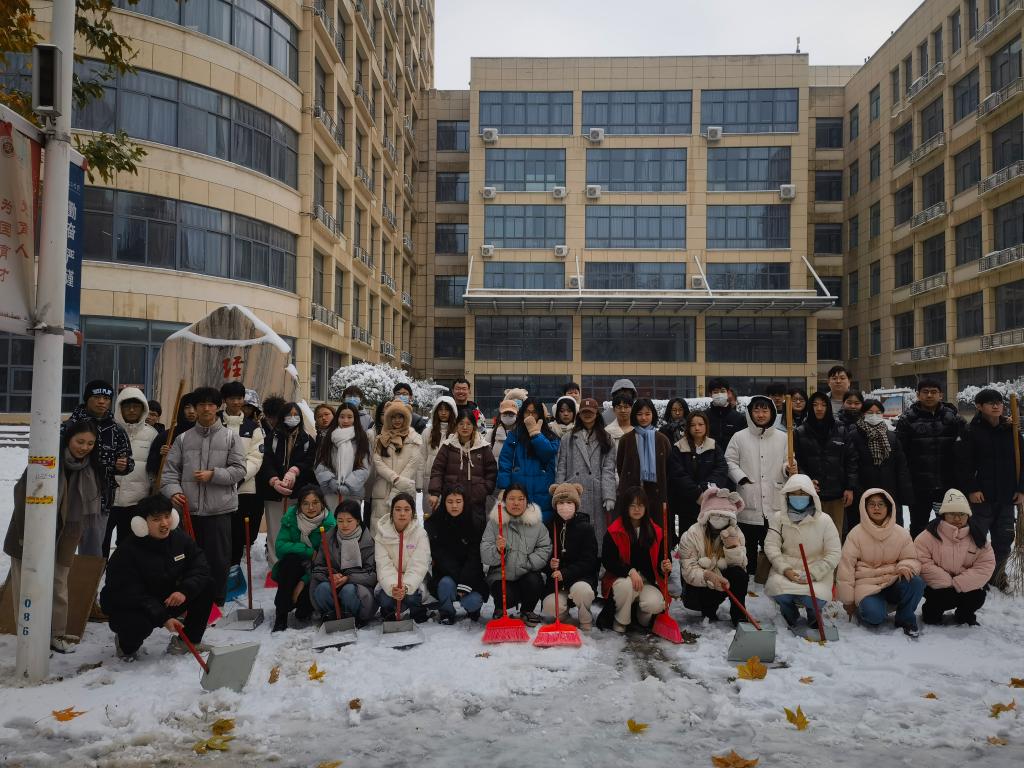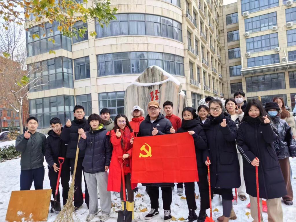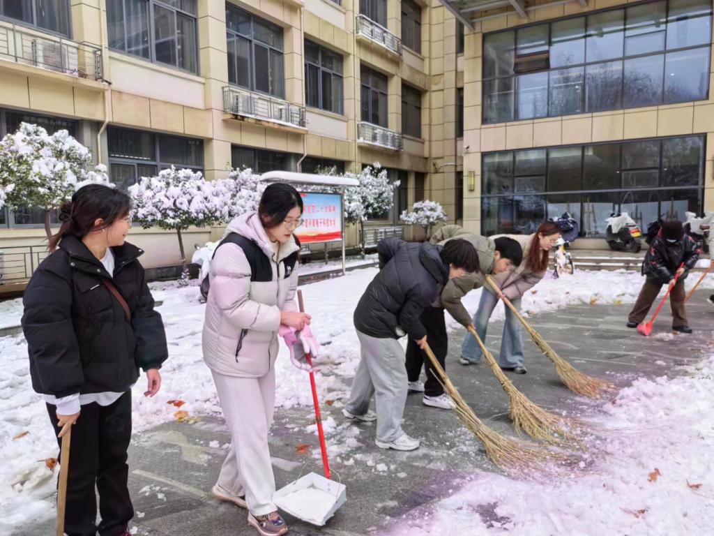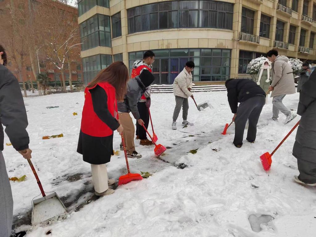 “忽如一夜春风来,千树万树梨花开。”飘落的雪花将校园装饰成独具一格的雪城。2023年12月11日,为了保障道路的畅通和同学们出行的安全,tyc7111cc太阳成集团学生党支部书记杨文乐、陈金、郭政良带领本科生学生党员积极开展了扫雪除冰保畅通工作。