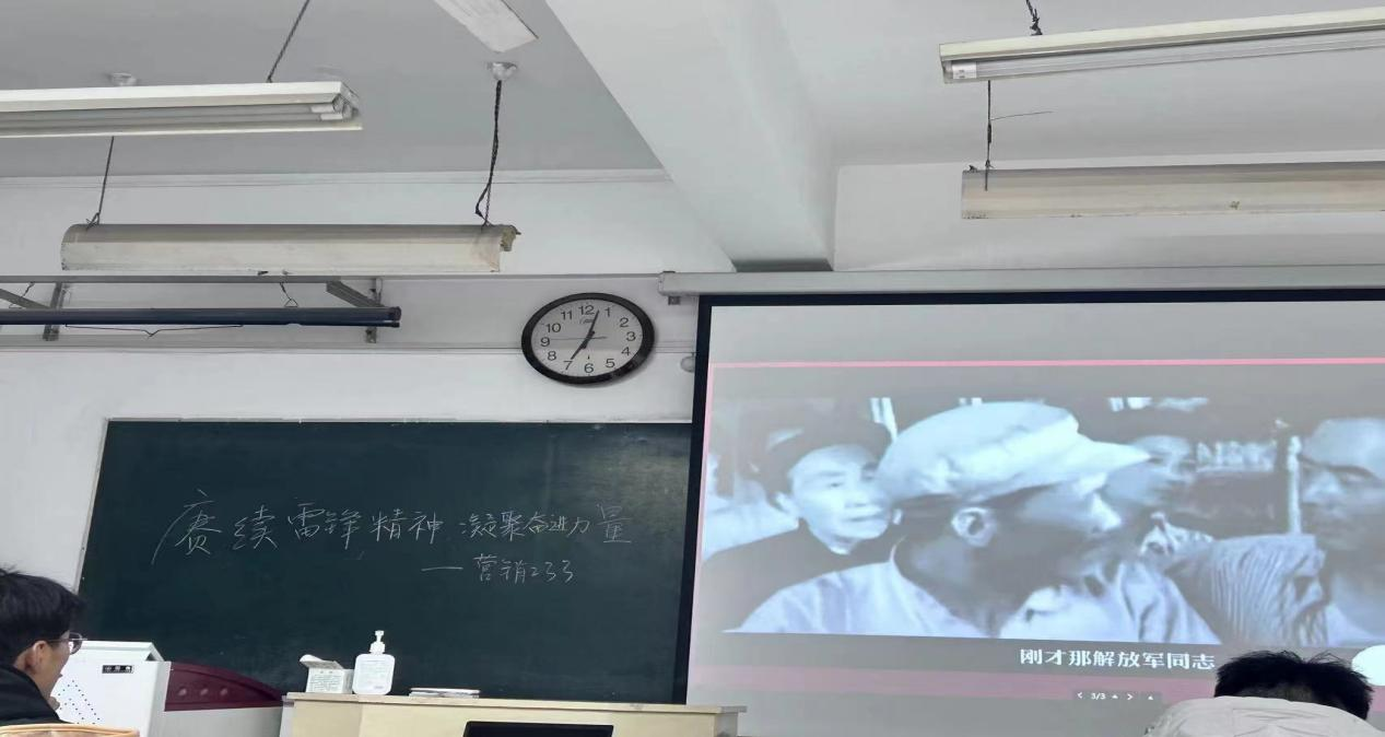 班会上,同学们重温雷锋同志的生平简介和人生经历,深入学习雷锋精神的内涵,交流在日常生活中贯彻雷锋精神的行动,表达了凝聚奋斗力量,积极构建和谐校园的想法和打算。