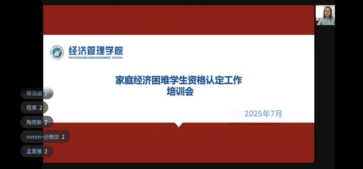 为贯彻落实高校学生资助政策,推进精准资助工作,7月3日15时,tyc7111cc太阳成集团通过线上平台召开2025 年 "两节课" 资助政策宣讲会。会议由学院学生工作办公室副主任陈金主持,我院全体学生参加本次活动。