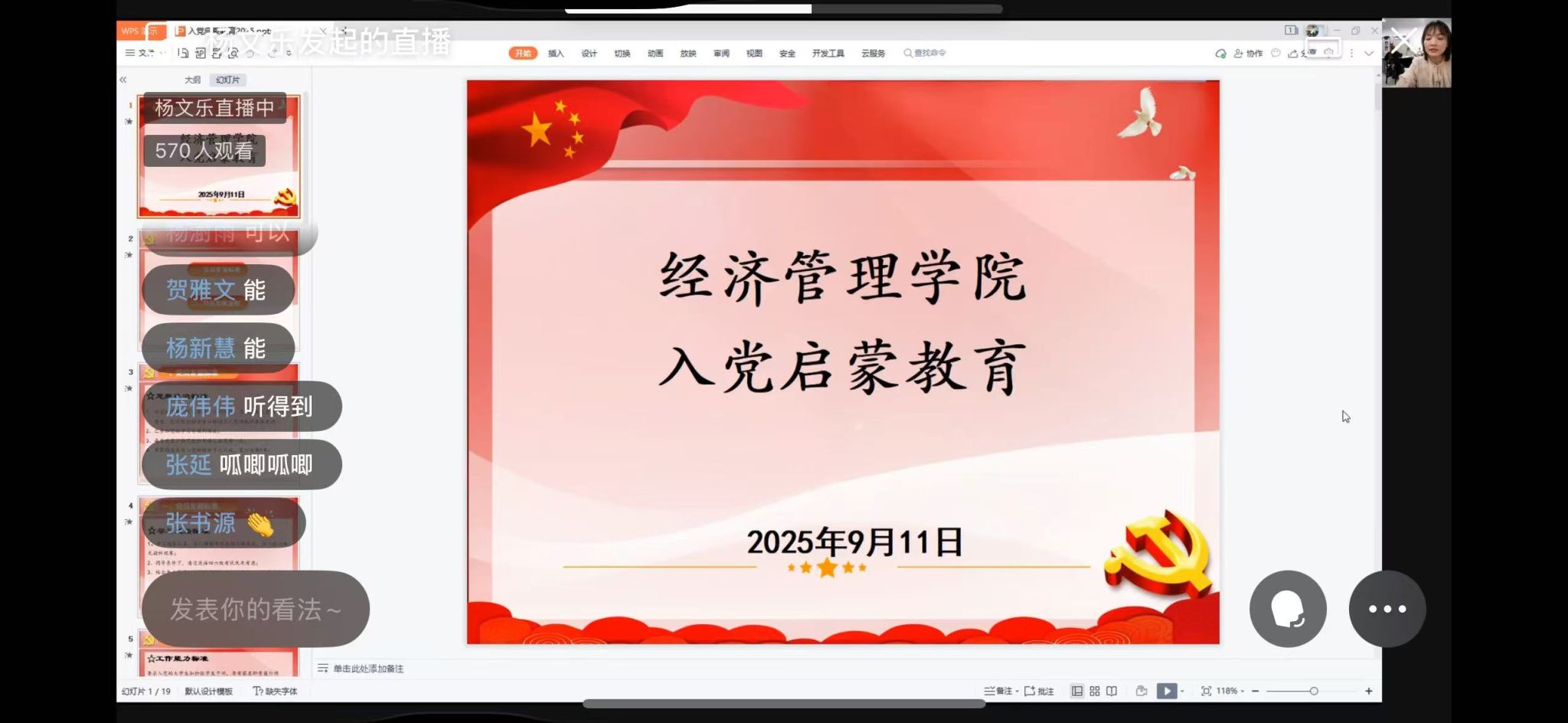9月11日,学院开展线上2025级新生入学领航讲座,学院团委书记郭姗、科级组织员段瑞婕及2025级专职辅导员分别围绕不同模块展开讲解,全体新生以宿舍为单位进行线上学习。