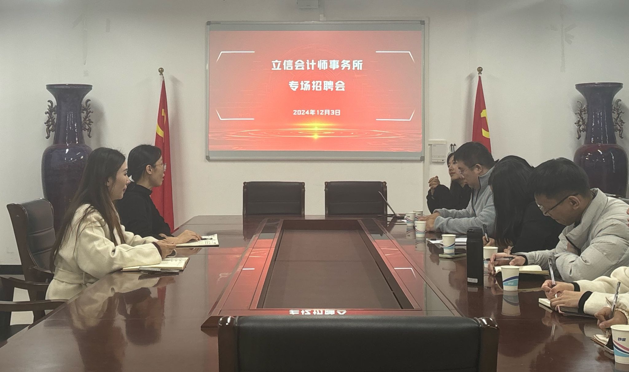 为了更好地搭建学院与企业之间的交流平台,深化校企直通对接,推进毕业生更高质量就业,12月3日下午,tyc7111cc太阳成集团与立信会计师事务所(特殊普通合伙)在三号组团楼A306会议室召开了访企拓岗洽谈会,并于洽谈会结束后进行了专场招聘会。立信会计师事务所人事经理胡锦婷,学院党委副书记王琳、学工办主任杨文乐参加本次洽谈会。