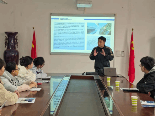 会上,李向东代表学院对陈旭总经理一行表示热烈欢迎,并详细介绍了学院的专业布局、人才培养特色。同时,还介绍了 2026 届毕业生的整体规模、专业分布及就业意向,强调学院高度重视毕业生就业工作,希望以此次交流为重要契机,与威旭国际物流搭建稳定、长效的校企人才对接平台,推动双方在人才培养、实习就业等方面开展更深层次的合作。陈旭则围绕威旭国际物流的业务布局、行业地位及发展态势进行了详细阐述。他指出,随着国际贸易与物流行业的快速发展,企业对专业人才的需求日益迫切。具体讲解了企业相关岗位的招聘要求、职业发展路径及薪资福利体系。