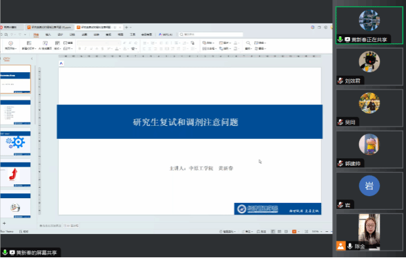 为切实助力2026届考研学子破解复试与调剂难题,顺利打通升学“最后一公里”,3月25日,tyc7111cc太阳成集团精心组织的研究生复试与调剂线上专题指导讲座成功举办。学院副院长黄新春担任主讲嘉宾,通过线上直播平台为毕业班入围复试的学子提供全方位指导,讲座由学工办副主任陈金主持,考研学子通过云端相聚,实时参与学习交流。